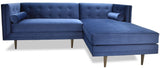 Modern shelter arm styling with cylinder pillows and button tufting on the inside back and arms add a touch of sophistication. The inset cone legs are available in your choice of finish.