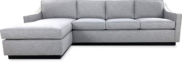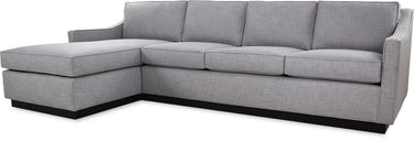 Updated transitional styling with slim sloped arms, three over three seating and an inset plinth base for an added touch of sophistication.