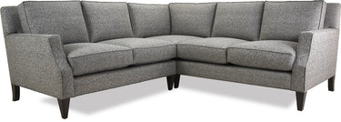 Graceful cutout arm styling with welted seam detail, accented by tapered legs and hand hammered nail trim in your choice of finish.