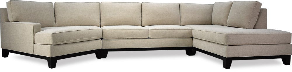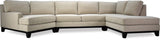 Casual, contemporary track arm styling with "T" seat and back pillow detail, welt detail on seams, and tapered leg wood base in your choice of finish.
