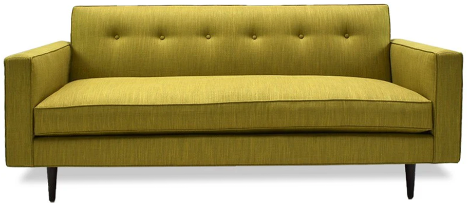 The Bachelor Sofa captures the spirit of mid-century design with a refined, retro edge. Its button-tufted tight back and sleek bench seat create a streamlined silhouette, while inset tapered cone legs add a touch of sculptural detail. The result is a piece that feels both timeless and distinctly modern.