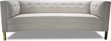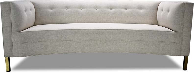 The Geneva Sofa is a graceful blend of modern tailoring and timeless elegance. Its curved frame is complemented by subtle tufting along the back and sides, creating a sophisticated silhouette that feels both inviting and refined. Slim metal legs add a touch of contemporary polish, grounding the piece with understated detail.
