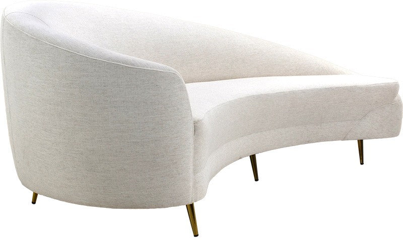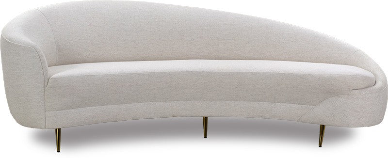 The Lagoon Sofa is a sculptural piece defined by its sweeping crescent shape, graceful curves, and refined tailoring. Perched on slender metal legs, its silhouette feels light and elevated, creating a striking focal point in any interior.