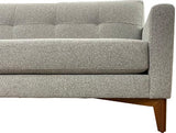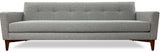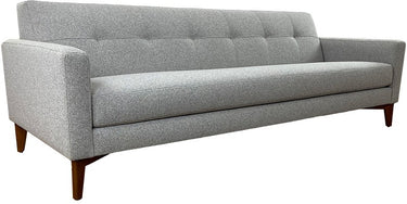 The Salvatore Sofa is a sleek nod to mid-century modern design, defined by its clean lines, structured silhouette, and tailored bench seat. Subtle tufting along the back adds refined detail, while the slim track arms and tapered wood legs create an effortlessly modern profile.