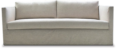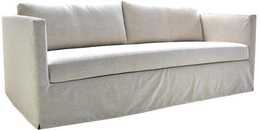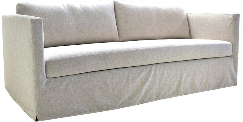 The Santa Barbara Sofa embodies relaxed sophistication with its updated shelter-arm silhouette and tailored slipcovered design. Featuring a continuous bench seat and a waterfall slipcover that drapes seamlessly to the floor, it offers a crisp, modern profile while maintaining an inviting softness.