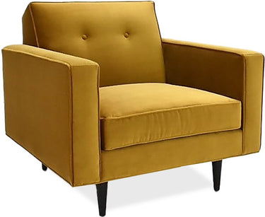 The Bachelor Chair embodies mid-century modern design with retro styling and timeless appeal. A button-tufted back, sleek bench seat, and slim arms create a tailored yet relaxed silhouette.