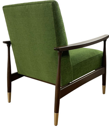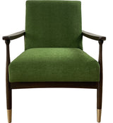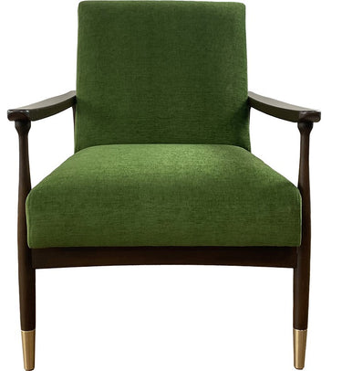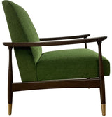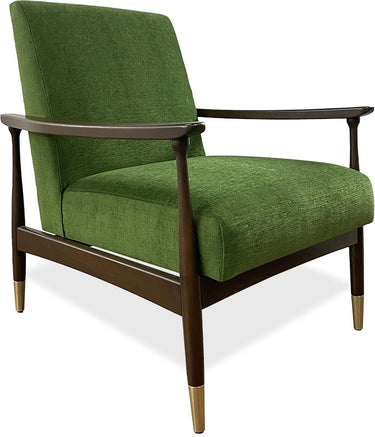The Bjorn Chair embodies the spirit of mid-century modern design. Its sculpted wood frame, slim arms, and tapered legs accented with metal caps create a refined silhouette with vintage appeal.